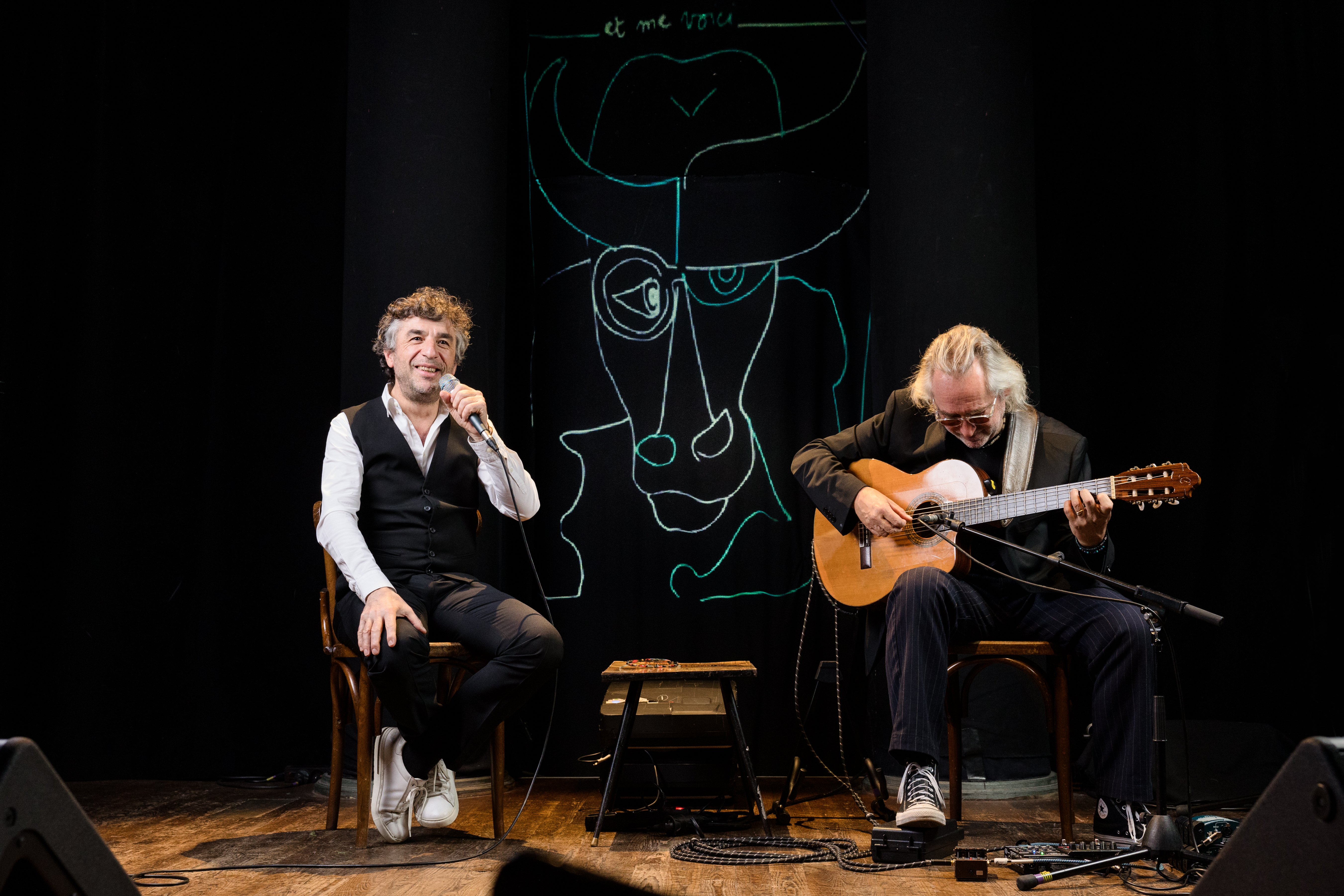 C’est plus un portrait intimiste du poète de « Toulouse » qu’un tour de chant. Justesse enjouée d’une fraternelle évocation. Je me suis très vite laissé prendre. Et surprendre. Ces paroles pourtant connues par cœur depuis quarante ans me revenaient de loin. Grâce au subtil détour d’un spectacle plein de grâce. Louis Winsberg fait le reste. En magicien prodigieux de la guitare. Il fait danser la voix d’Yvan. Sur le tapis volant de ses six cordes merveilleusement vibrantes. Son allègre dextérité fait tourner le manège des rimes. Avec un sens exceptionnel de l’accompagnement. [...]