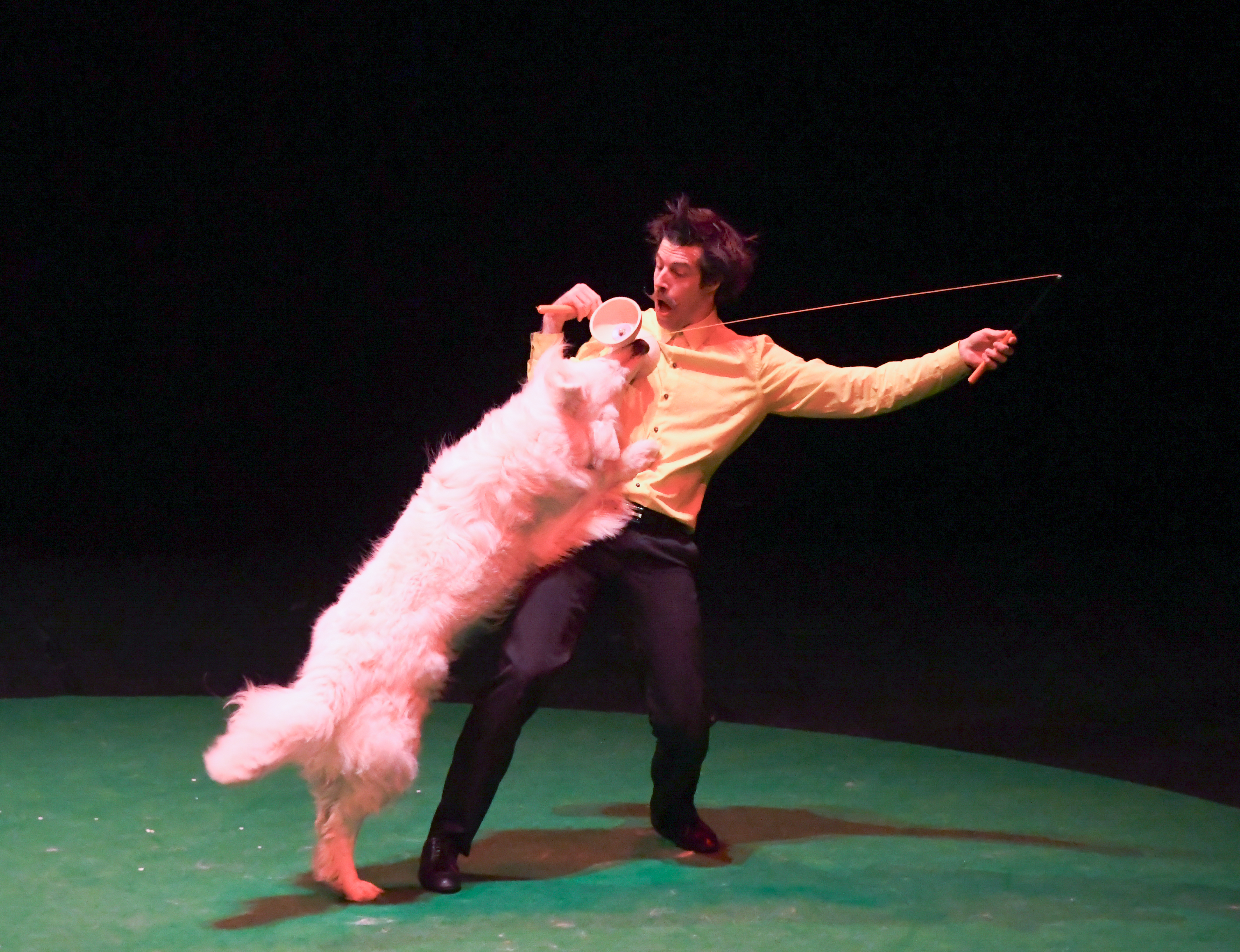 "Ecrit comme un patchwork, ce spectacle sera une succession savante de saynètes canines accompagnées de musique en direct. Pour sortir du gentil toutou qui fait son cirque démonstratif, le travail artistique commencera avec l’oubli de la maîtrise technique au profit du plaisir pris à cette relation. Le « dressage » devient ici art poétique. Basé sur des relations de complicité et de jeu, notre désir est de mettre en lumière chaque singularité. Le travail des humains consiste à révéler la personnalité de chaque ami canin, et aussi de créer un univers artistique autour d’eux, avec eux et pour eux ! Ce spectacle reflète simplement l’envie d’être ensemble et de jouer. [...] L’apparente simplicité du ton, n’empêche pas un cirque à la profondeur insoupçonnée, dans lequel les auteurs se lancent avec le même sérieux que d’ordinaire, la même passion, la même volonté d’imaginer un spectacle se voulant à la fois reflet du monde et échappatoire onirique face à la violence de celui-ci. La seule présence du chien peut faire ressortir les traits les plus agréables et conviviaux de l’humanité".