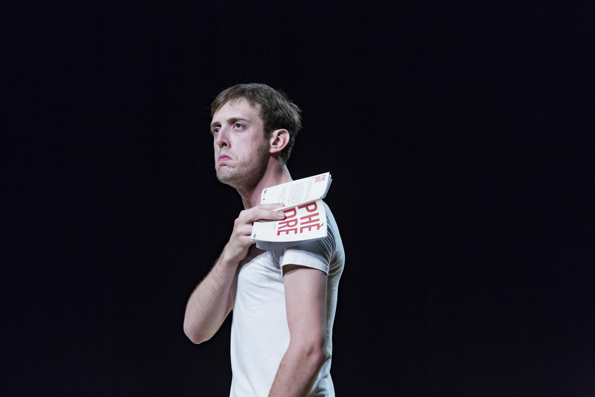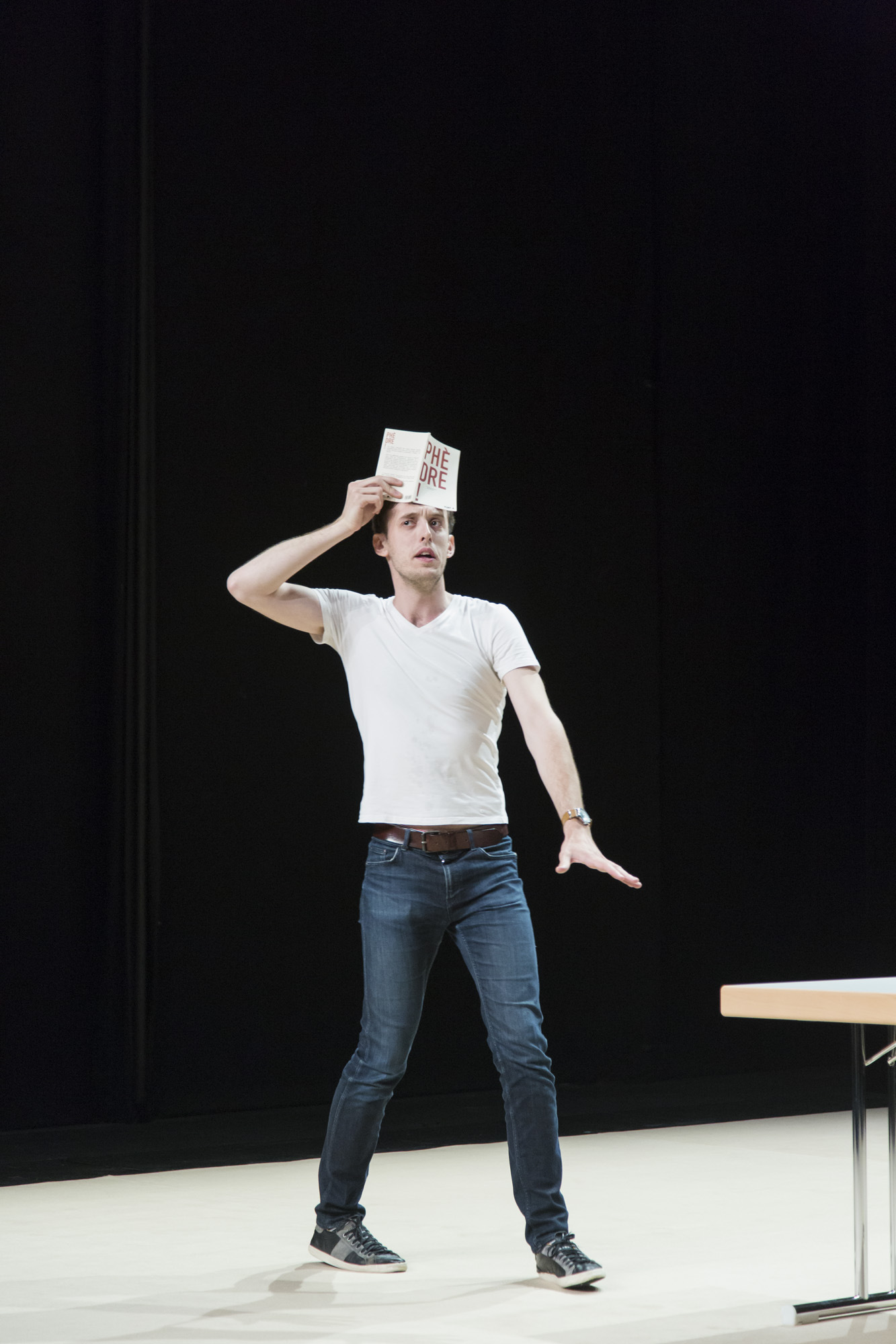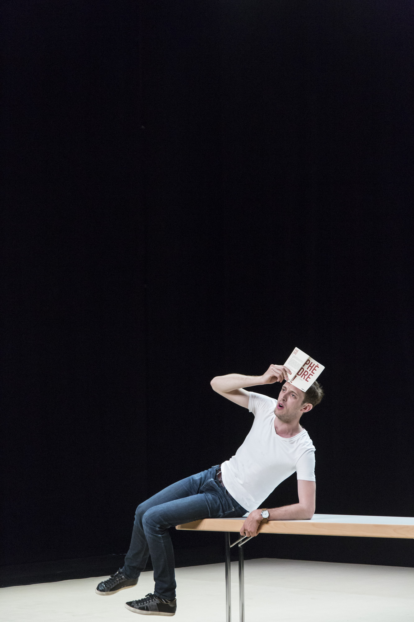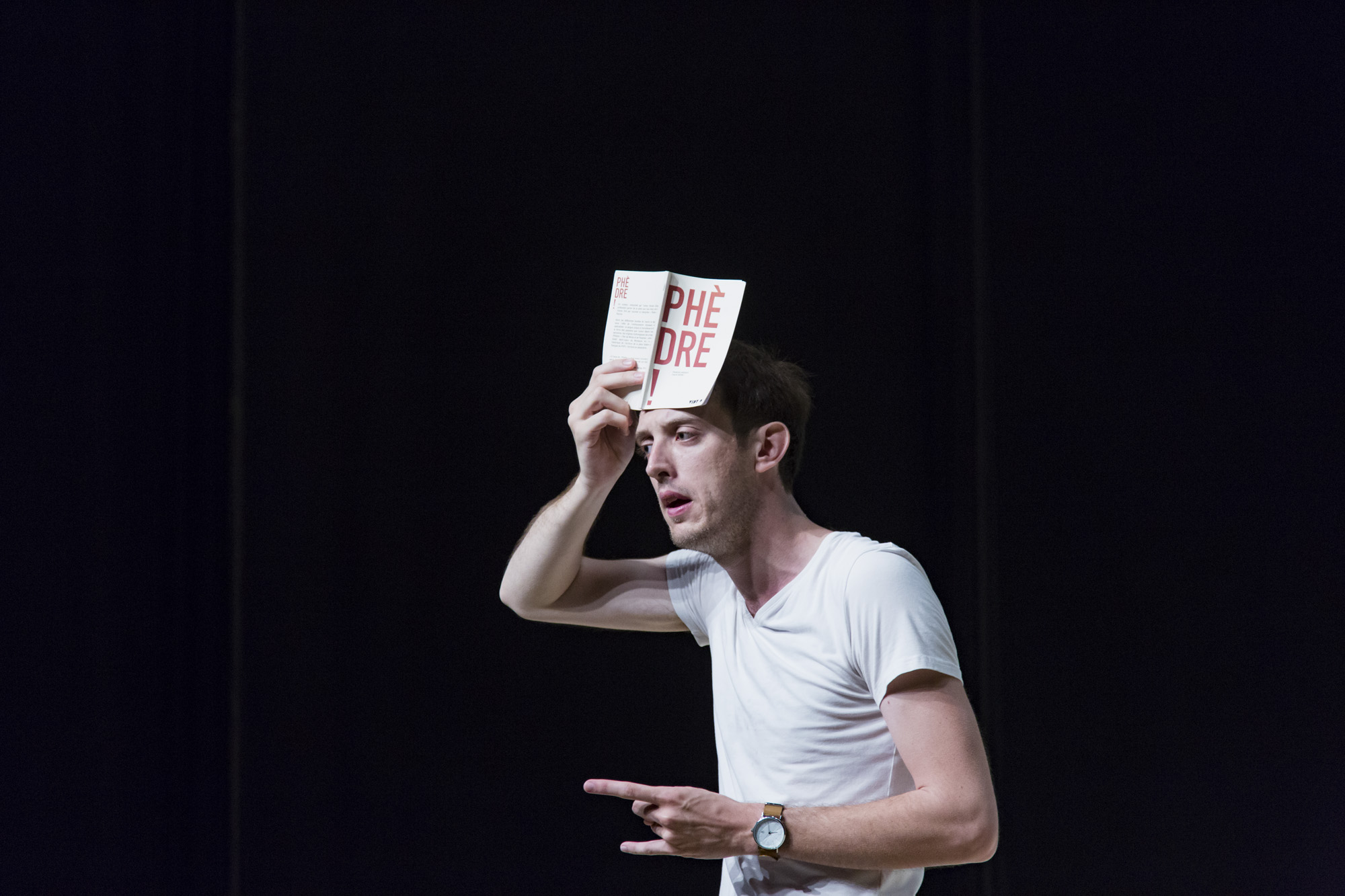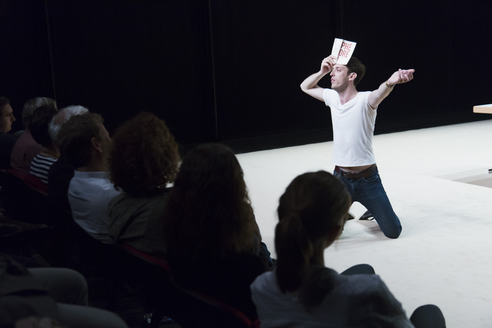 Bien sûr, on le devine, il sera question de Phèdre, la plus fameuse et plus jouée des tragédies de Racine. Pourtant, bien que son principal sujet, elle ne sera pas le véritable sujet de ce spectacle. Ce dernier se cache sous le point d’exclamation, ce signe de ponctuation qui, au temps de Racine, était appelé point d’admiration (du latin admirari, composé de ad – et de mirari, « admirer », « s’étonner »). En effet, le véritable sujet de Phèdre ! est l’admiration que son unique protagoniste – Romain, façon d’orateur – voue à la tragédie de Racine. Un admirateur, par définition, considère avec un étonnement mêlé de plaisir quelque chose qui lui paraît beau, qui lui paraît merveilleux. Mon ambition est de mettre en partage avec les spectateur·ices cet étonnement mêlé de plaisir en abordant simultanément, par le biais d’un conférencier débordant d’enthousiasme, différentes facettes de la pièce : la langue unique et merveilleuse de Racine, la force des passions qu’il dépeint mieux que personne, les origines mythologiques des protagonistes (Phèdre, « fille de Minos et de Pasiphaé », petite-fille du Soleil, demi-sœur du Minotaure), le contexte historique de l’écriture de la pièce (théâtre classique français du XVIIᵉ) De fait, j’entends pas moins que partager – outre mon admiration pour Phèdre en particulier – mon amour pour le théâtre en général, cet art vivaant qui ne cesse de célébrer la joie profonde d’être au monde. Une théorie voudrait que l’origine du point d’exclamation vienne de l’exclamation de joie, io en latin, qui aurait été abrégée d’un i au-dessus d’un o. Ainsi, comme dans tous mes spectacles – et bien que la pièce de Racine soit une tragédie – il sera dans Phèdre ! question de joie, cette « force majeure » dont « le privilège est de savoir triompher de la pire des peines » comme le résume formidablement le philosophe Clément Rosset.