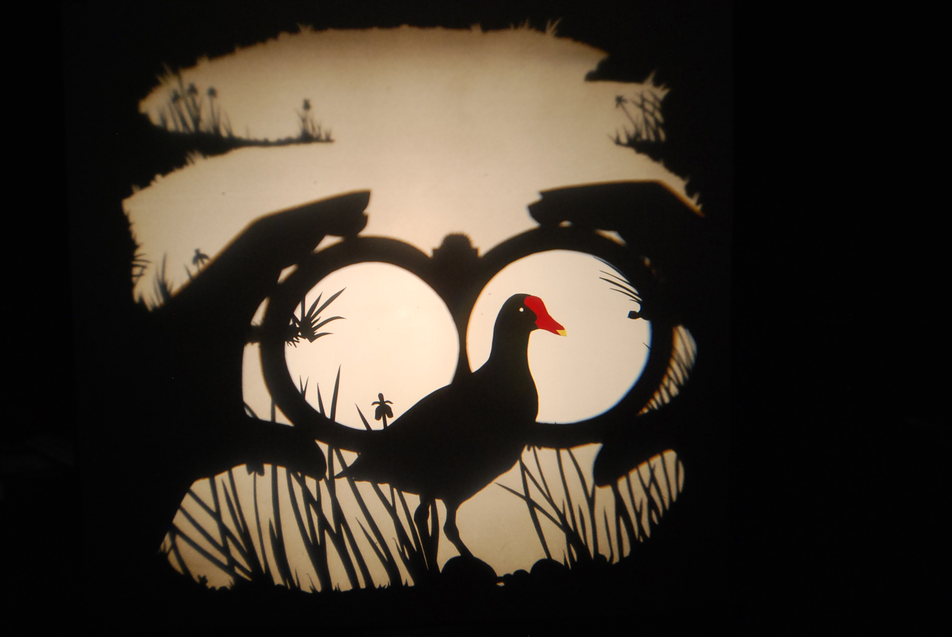 Dans une société biberonnée à l’image et à l’information, le choix d’un spectacle poétique fait contrepoint. La poésie qui parle aux émotions plus qu’à l’intellect, où les mots sont choisis et liés pour leur pouvoir évocateur, leur mélodie et leur rythme. Avec cet outil magique qu’est le rétroprojecteur, Coline Hateau vient toucher le public en sublimant des nervures et des folioles, des élytres et des mandibules, en ciselant avec son scalpel des paysages graphiques qui se noient sous des liquides aux réactions chimiques et chimériques. Comme dans une danse, les mots mis en chanson viennent compléter l’image faite d’ombres chaudes et de mouvements au rythme des mains qui manipulent les découpages, les objets, les liquides sur le rétroprojecteur. Une écriture non narrative, sous forme de tableaux permet d’orienter les images créées et la musique composée, pour donner à voir et à entendre des scènes singulières : les nids de différentes formes et matières, les pattes de l’échassier vues sous l’eau, l’oeuf et la matière dure et cassante de sa coquille, les chants qui se répondent, une huppe qui joue du violoncelle, la migration de masse et le vol solitaire.
